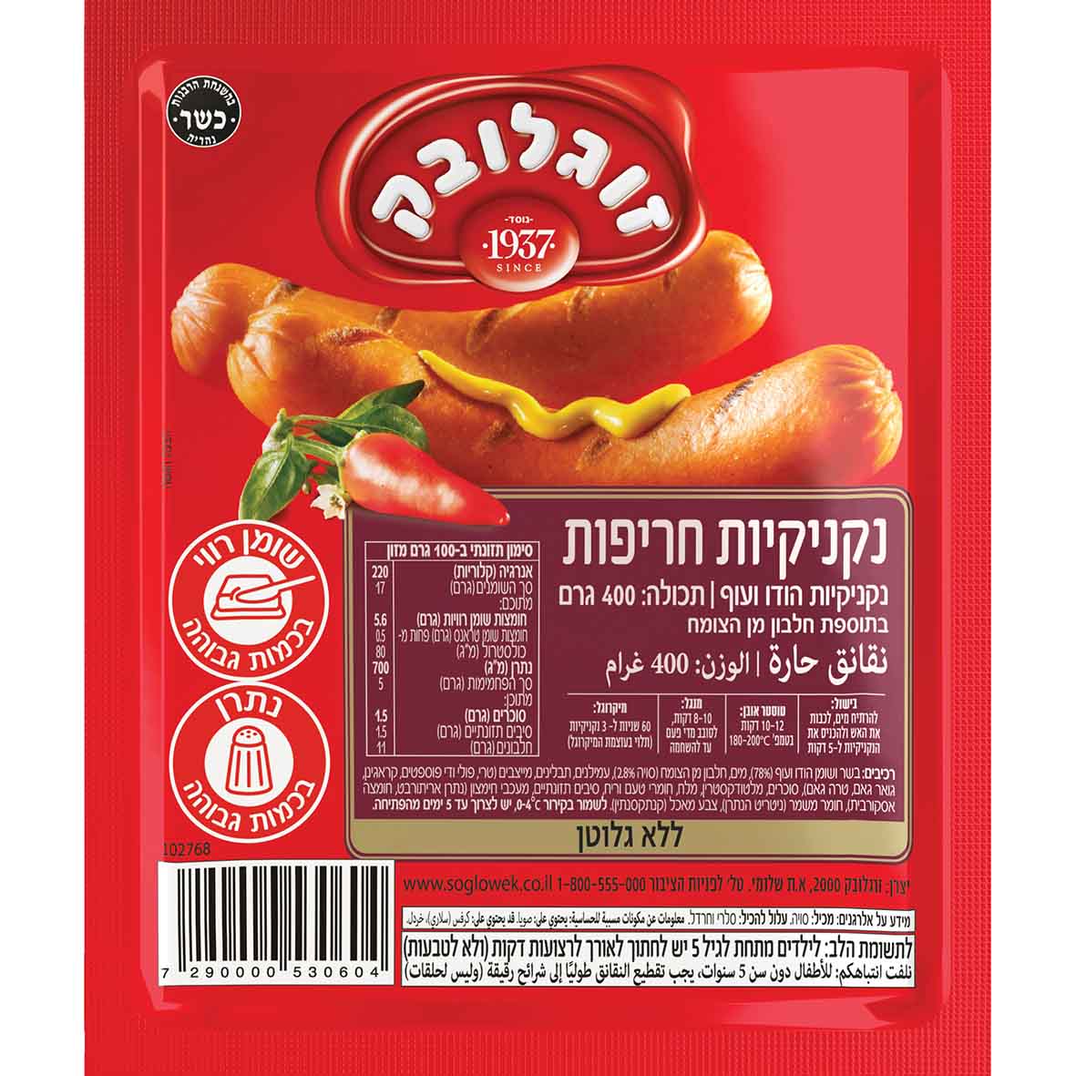 נקנקיות חריפות זוגלובק 400 גרם₪18.00 - כמות של נקנקיות חריפות זוגלובק 400 גרם + הוספה לסל מק"ט: 7290000530604 קטגוריה: מעדניה מוצרים קשורים טחינה לבנה אחלה 500 גרם ₪12.00 הוספה לסל סלט מטבוחה יום יום ₪6.00 הוספה לסל חומוס אחלה 125 גרם ₪6.00 הוספה לסל חומוס אחלה ₪12.00 הוספה לסל